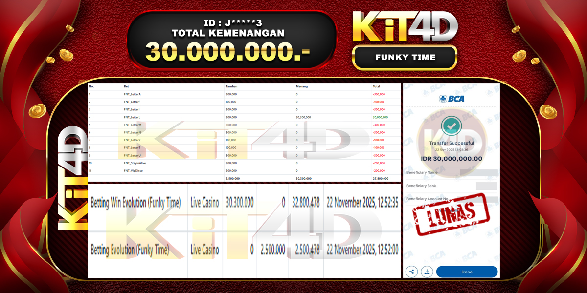 Read moreKIT4D – Selamat kepada Pemenang User ID : J*****3 JP FUNKY TIME Rp 30.000.000 pada 22 November 2025 – Bermain di situs game online terpercaya […]