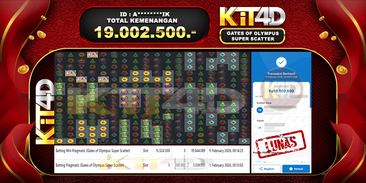 Read moreKIT4D – Selamat kepada Pemenang User ID : N******11 JP GATES OF OLYMPUS SUPER SCATTER Rp 19.002.500 pada 09 February 2026 – Bermain di situs […]