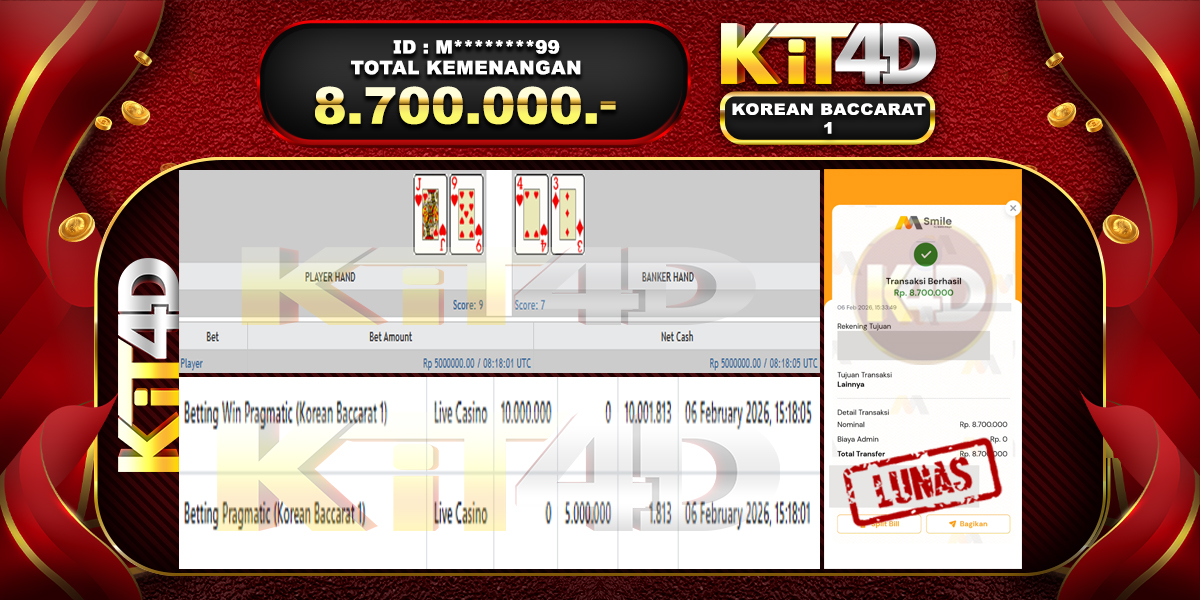 Read moreKIT4D – Selamat kepada Pemenang User ID : M********99 JP KOREAN BACCARAT 1 Rp 8.700.000 pada 06 February 2026 – Bermain di situs game online […]