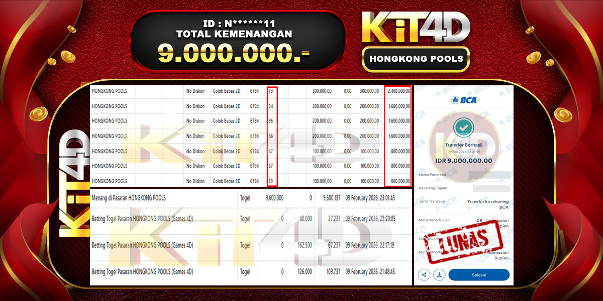Read moreKIT4D – Selamat kepada Pemenang User ID : N******11 JP HONGKONG POOLS Rp 9.000.000 pada 09 February 2026 – Bermain di situs game online terpercaya […]