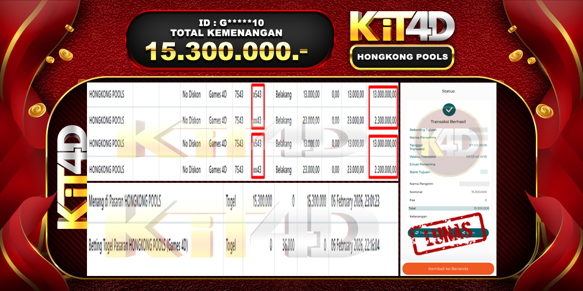 Read moreKIT4D – Selamat kepada Pemenang User ID : G*****10 JP HONGKONG POOLS Rp 15.300.000 pada 07 February 2026 – Bermain di situs game online terpercaya KIT4D […]