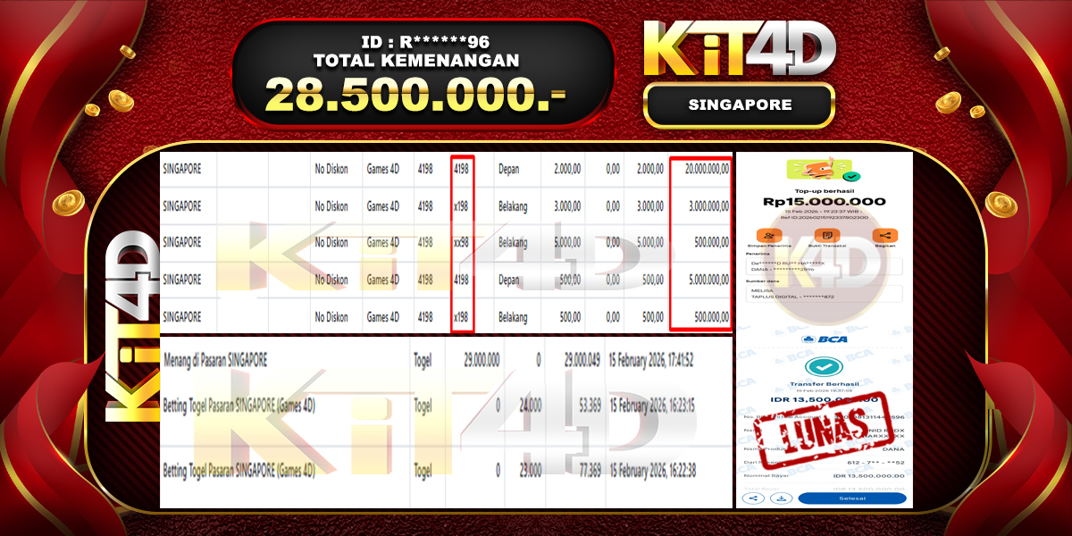 KIT4D – Selamat kepada Pemenang User ID : R******96 JP SINGAPORE Rp 28.500.000 pada 15 February 2026 – Bermain di situs game online terpercaya KIT4D yang […]