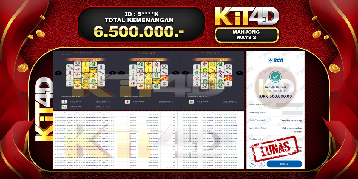 Read moreKIT4D – JP MAHJONG WAYS 2 Rp 6,500,000, – 25 MEI 2025