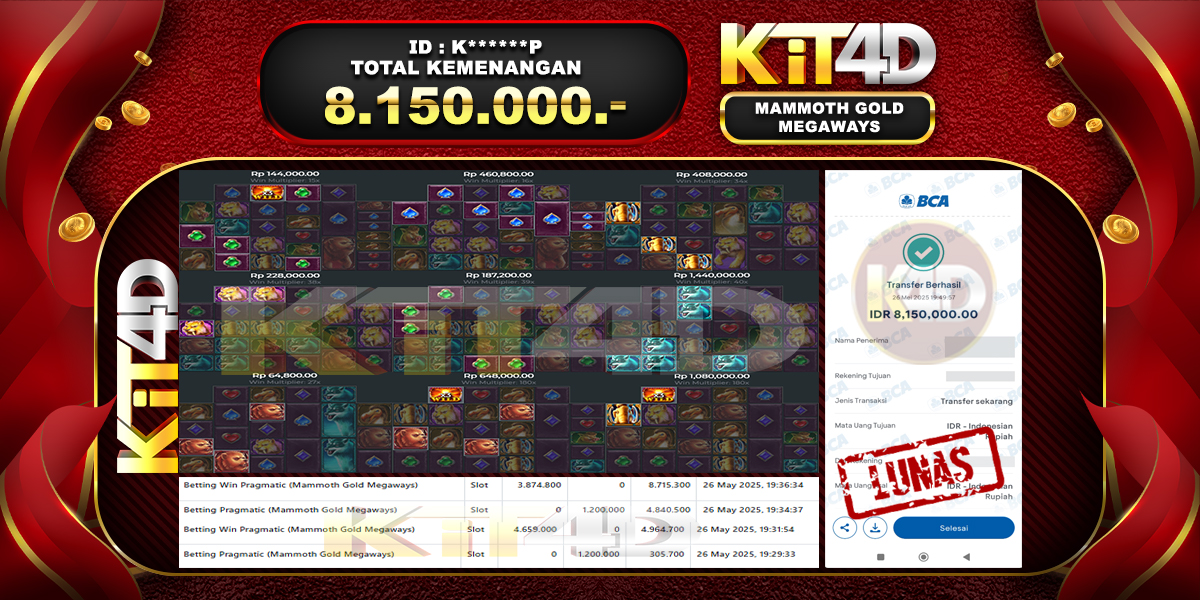 Read moreKIT4D – JP MAMMONTH GOLD MEGAWAYS Rp 8,150,000, – 26 MEI 2025