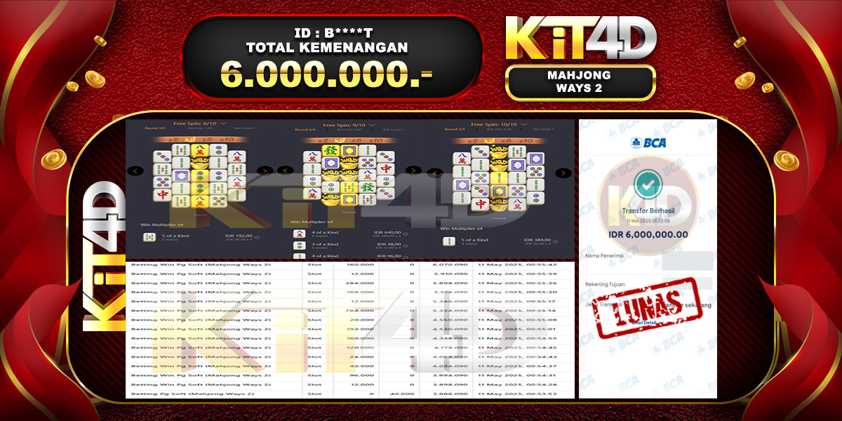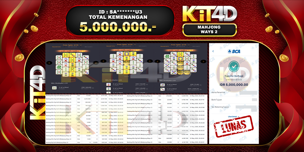 KIT4D – JP MAHJONG WAYS 2 Rp 5,000,000, – 12 MEI 2025