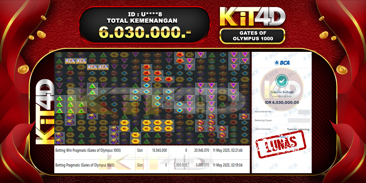 Read moreKIT4D – JP GATES OF OLYMPUS 1000 Rp 6,030,000, – 11 MEI 2025