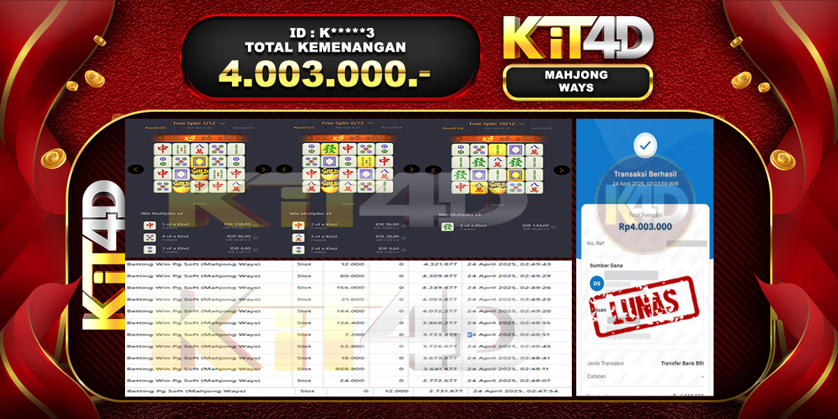 Read moreKIT4D – JP MAHJONG WAYS Rp 4,003,000, – 24 APRIL 2025