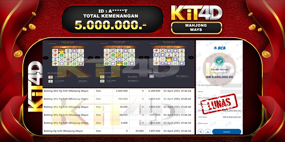 Read moreKIT4D – JP MAHJONG WAYS Rp 5,000,000, – 03 APRIL 2025