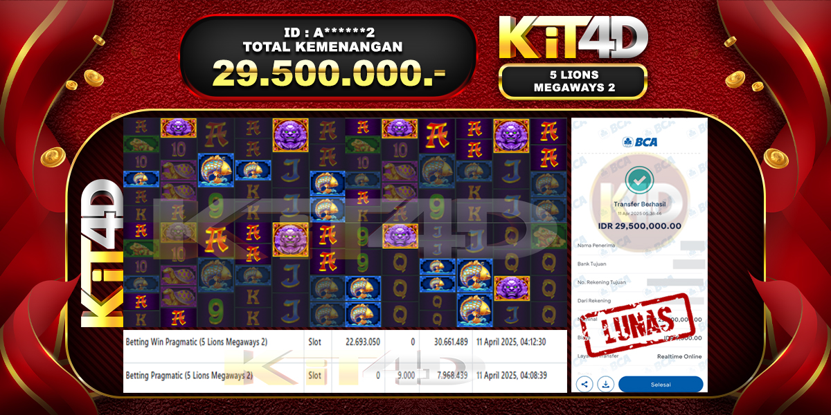 KIT4D – JP 5 LIONS MEGAWAYS 2 Rp 29,500,000, – 11 APRIL 2025
