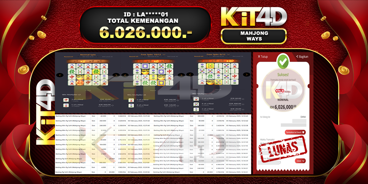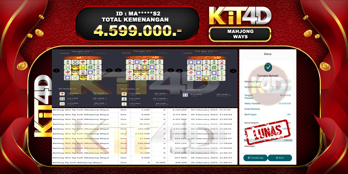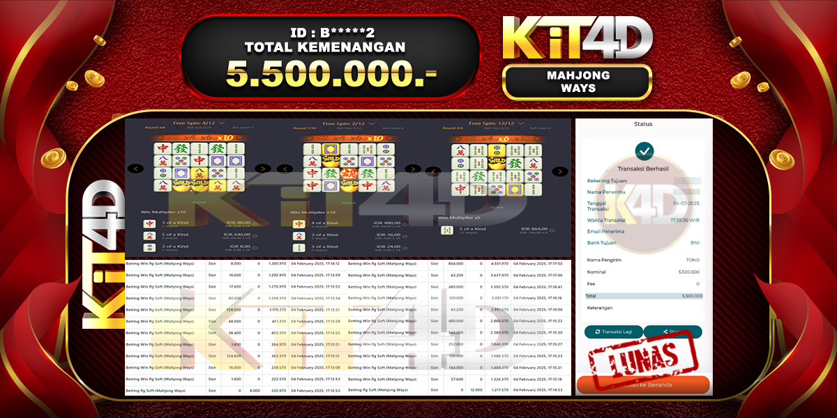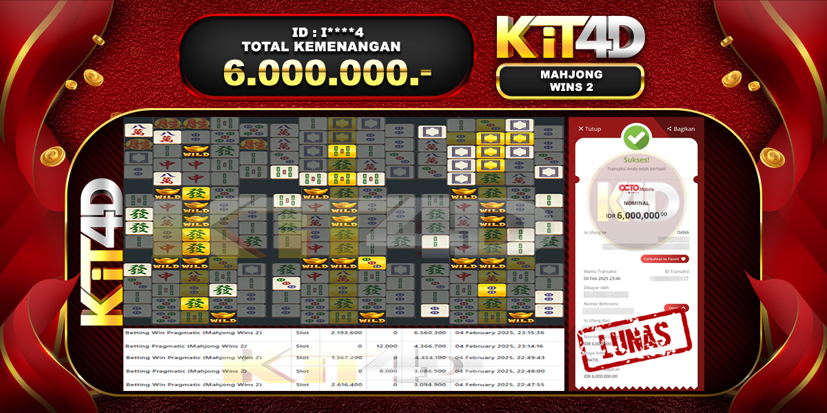 Read moreKIT4D – JP MAHJONG WAYS Rp 6,026,000, – 05 Februari 2025