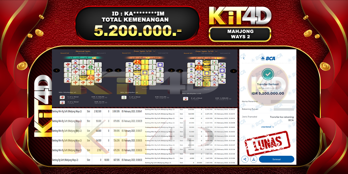 Read moreKIT4D – JP MAHJONG WAYS 2 Rp 5,200,000, – 05 Februari 2025