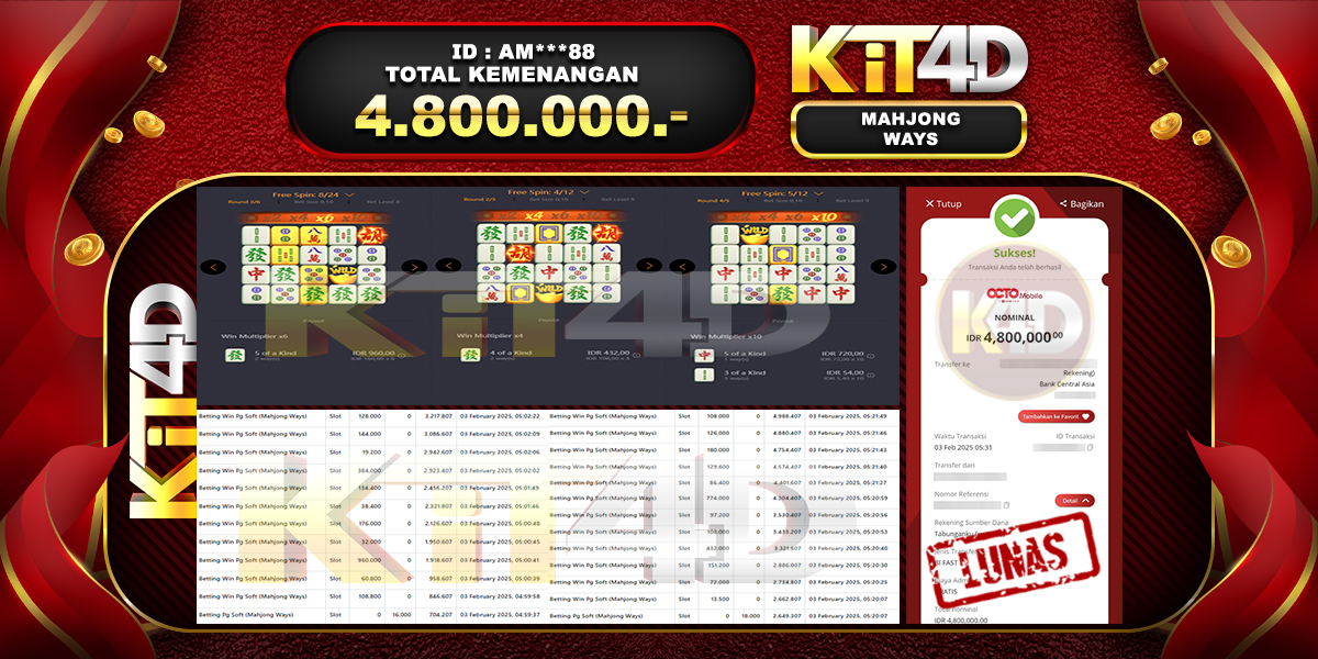 KIT4D – JP MAHJONG WAYS 2 Rp 8,000,000, – 04 Februari 2025