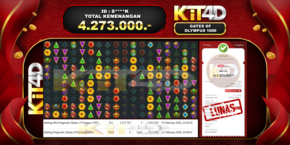 KIT4D – Selamat kepada Pemenang User ID : S****K JP GATES OF OLYMPUS 1000 Rp 4.273.000 pada 03 Februari 2025 – Bermain di situs game […]
