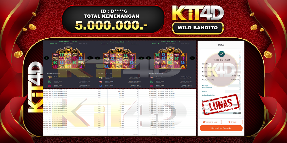 Read moreKIT4D – JP WILD BANDITO Rp 5,000,000 – 14 AGUSTUS 2025