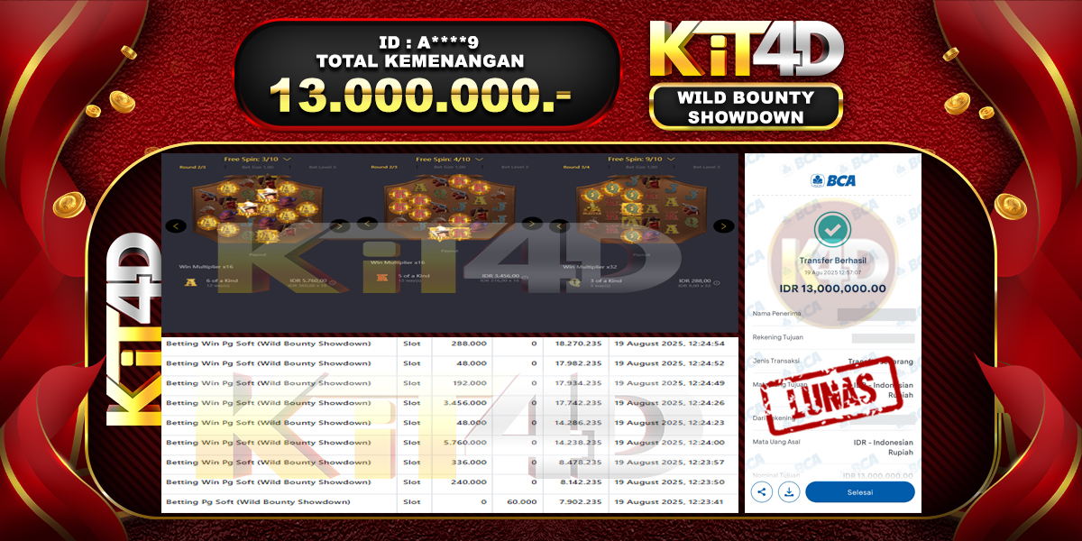 Read moreKIT4D – JP WILD BOUNTY SHOWDOWN Rp 13,000,000 – 19 AGUSTUS 2025