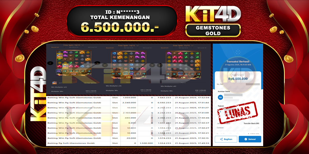 KIT4D – Selamat kepada Pemenang User ID : N******3 JP GEMSTONES GOLD Rp 6.500.000 pada 21 Agustus 2025 – Bermain di situs game online terpercaya […]