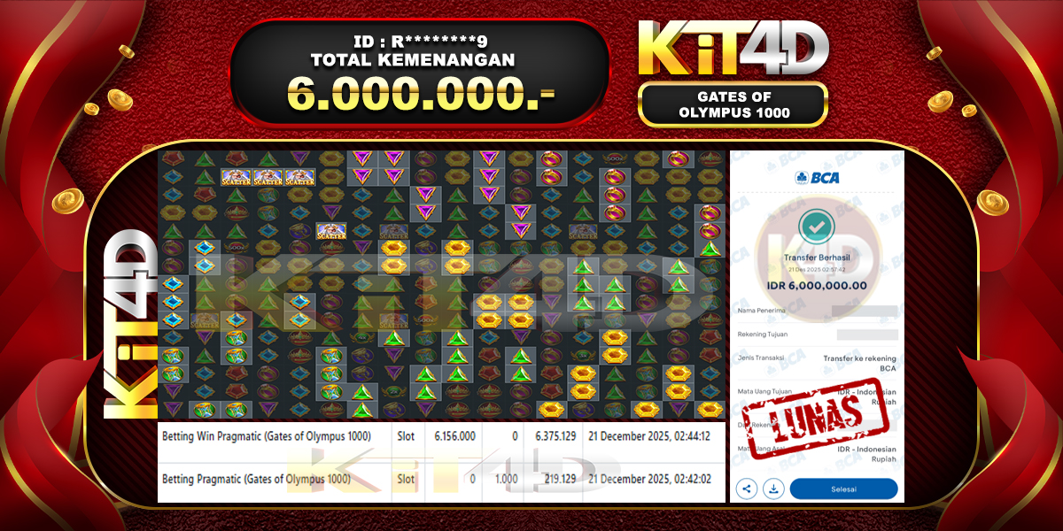 Read moreKIT4D – JP GATES OF OLYMPUS 1000 Rp 6,000,000 – 21 DESEMBER 2025
