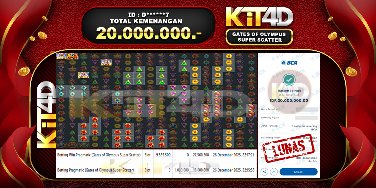 Read moreKIT4D – JP GATES OF OLYMPUS SUPER SCATTER Rp 20,000,000 – 26 DESEMBER 2025