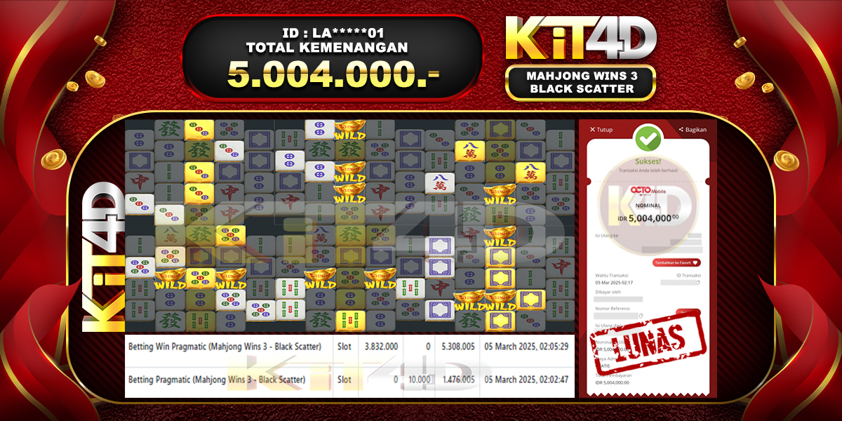 Read moreKIT4D – JP MAHJONG WINS 3 BLACK SCATTER Rp 5,004,000, – 05 MARET 2025
