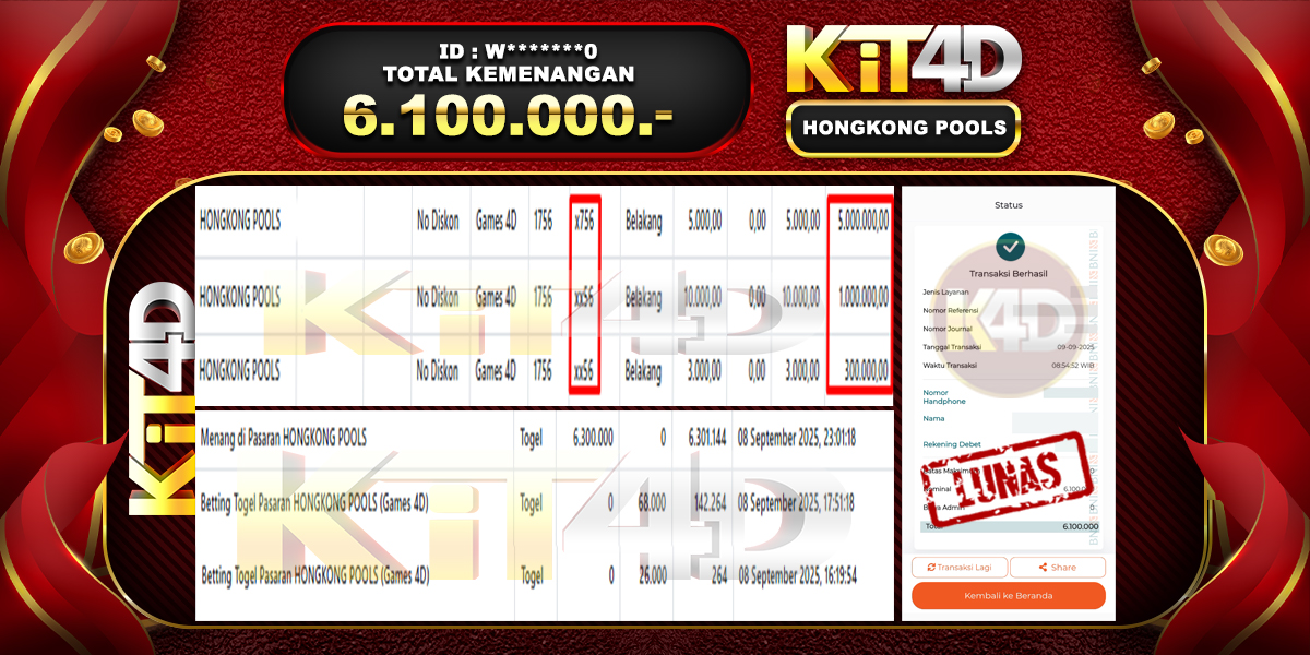 KIT4D – Selamat kepada Pemenang User ID : J*****3 JP HONGKONG POOLS Rp 10.000.000 pada 15 September 2025 – Bermain di situs game online terpercaya […]