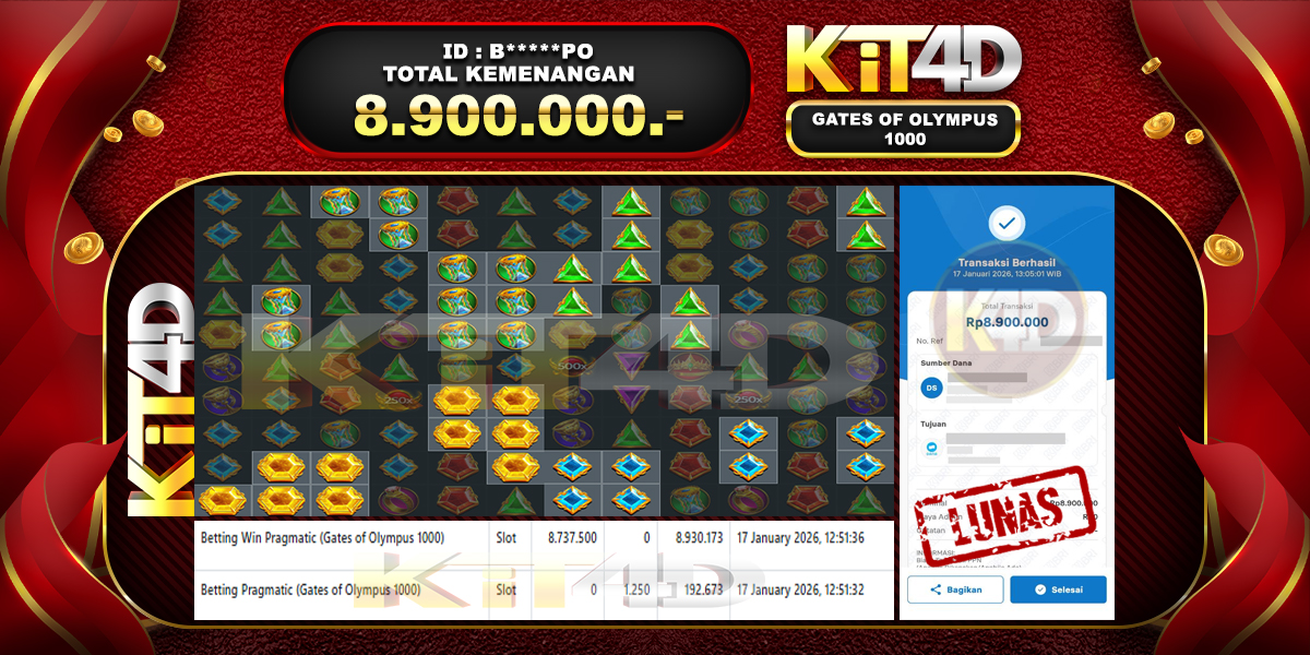 Read moreKIT4D – Selamat kepada Pemenang User ID : B*****PO JP GATES OF OLYMPUS 1000 Rp 8.900.000 pada 17 Januari 2026 – Bermain di situs game […]