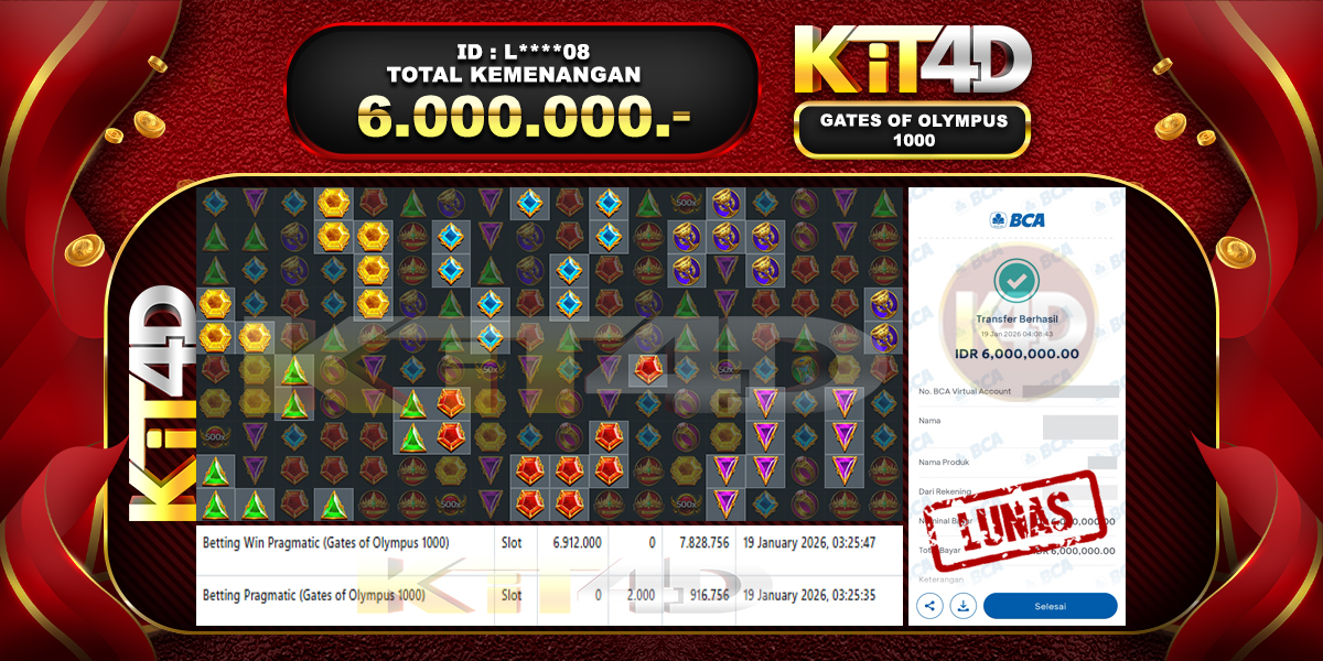 Read moreKIT4D – Selamat kepada Pemenang User ID : L****08 JP GATES OF OLYMPUS 1000 Rp 6.000.000 pada 19 Januari 2026 – Bermain di situs game […]