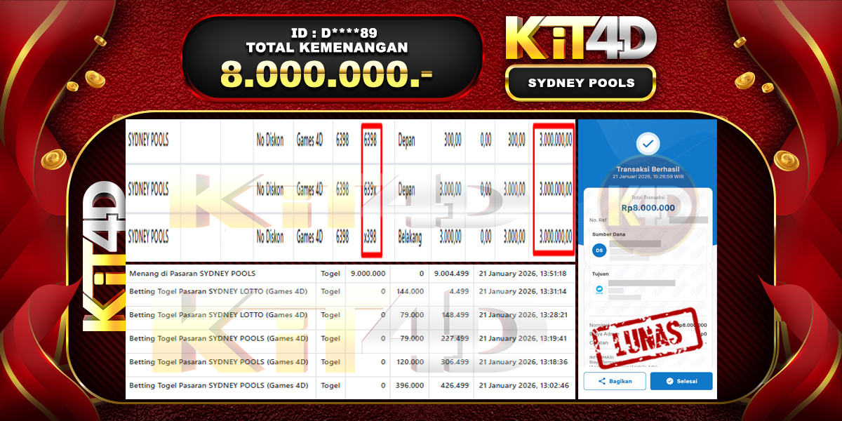 Read moreKIT4D – Selamat kepada Pemenang User ID : D****89 JP SYDNEY POOLS Rp 8.000.000 pada 22 Januari 2026 – Bermain di situs game online terpercaya […]