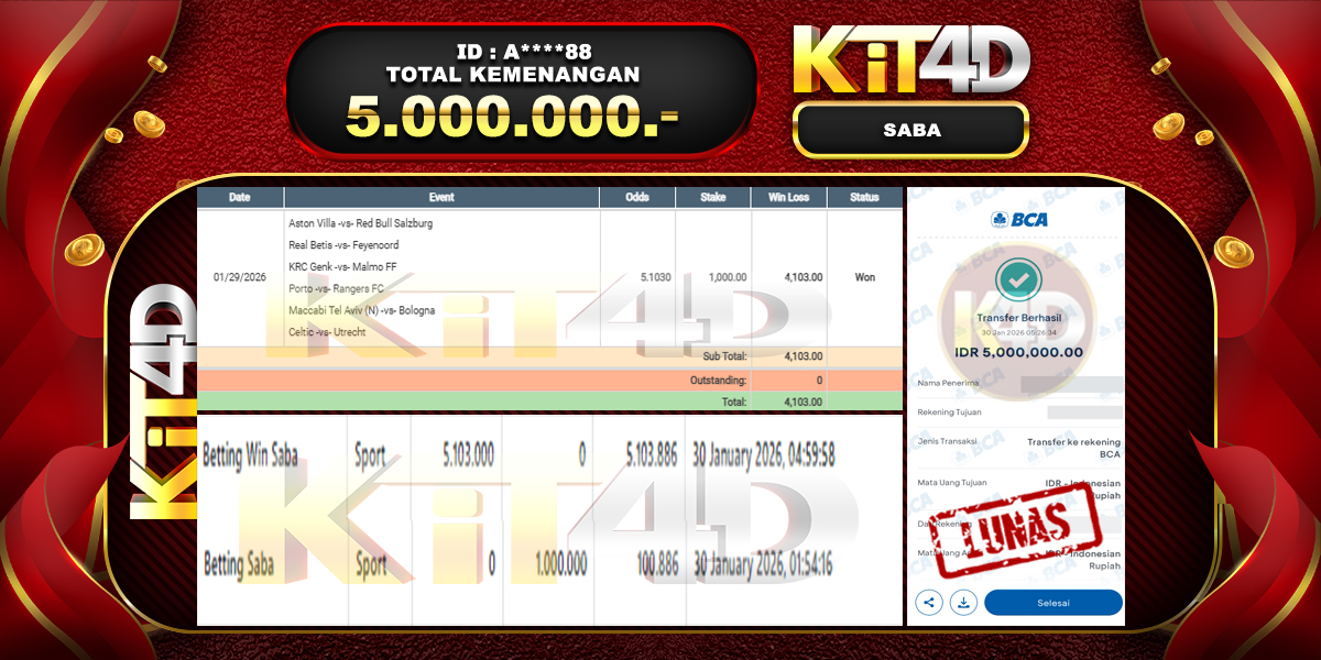 Read moreKIT4D – Selamat kepada Pemenang User ID : A****88 JP SABA Rp 5.000.000 pada 30 Januari 2026 – Bermain di situs game online terpercaya KIT4D […]