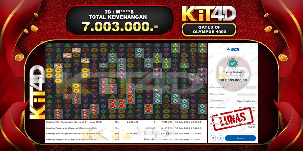 Read moreKIT4D – JP GATES OF OLYMPUS 1000 Rp 7,003,000, – 30 JULI 2025