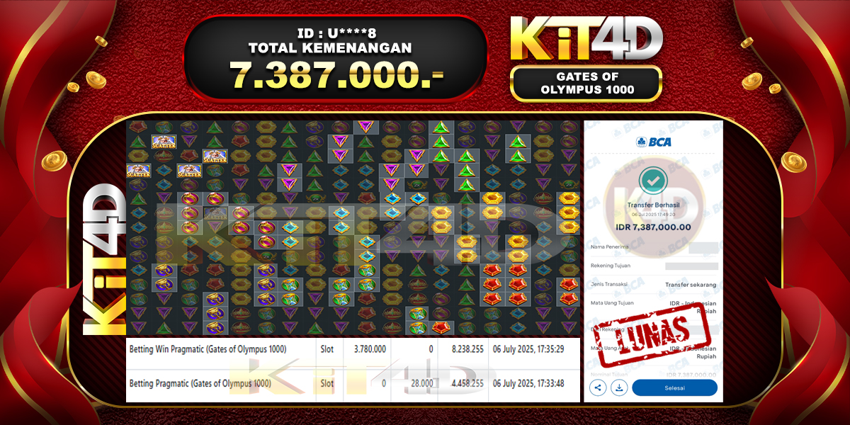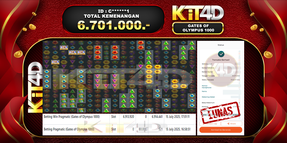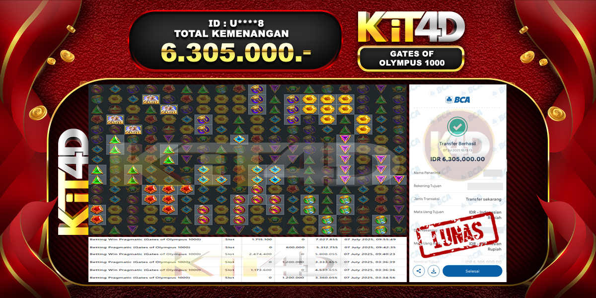 Read moreKIT4D – JP GATES OF OLYMPUS 1000 Rp 6,305,000, – 07 JULI 2025
