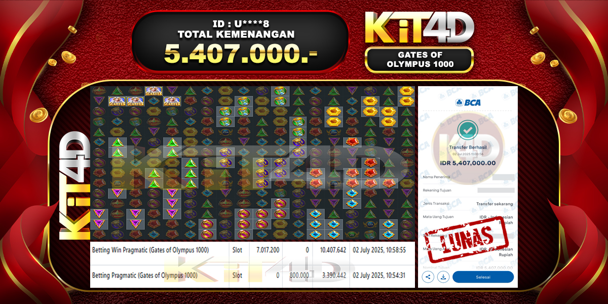 Read moreKIT4D – JP GATES OF OLYMPUS 1000 Rp 5,407,000, – 02 JULI 2025