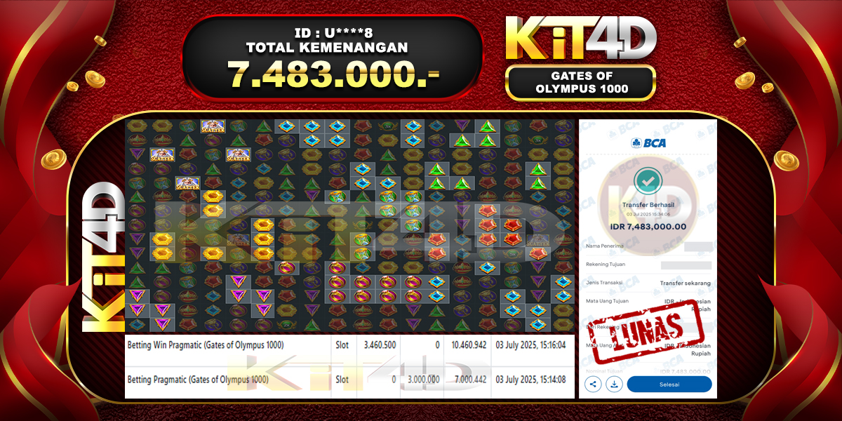 Read moreKIT4D – JP GATES OF OLYMPUS 1000 Rp 7,483,000, – 03 JULI 2025