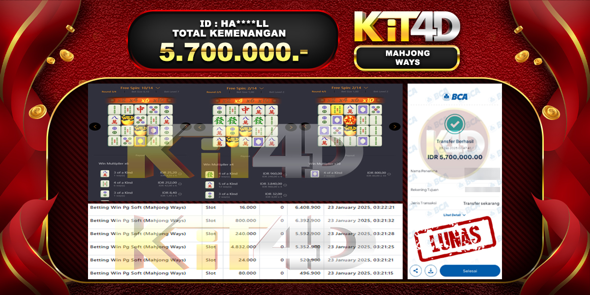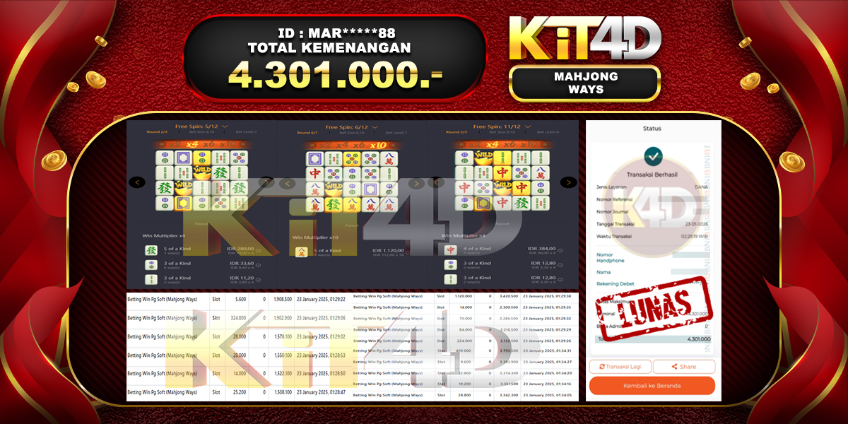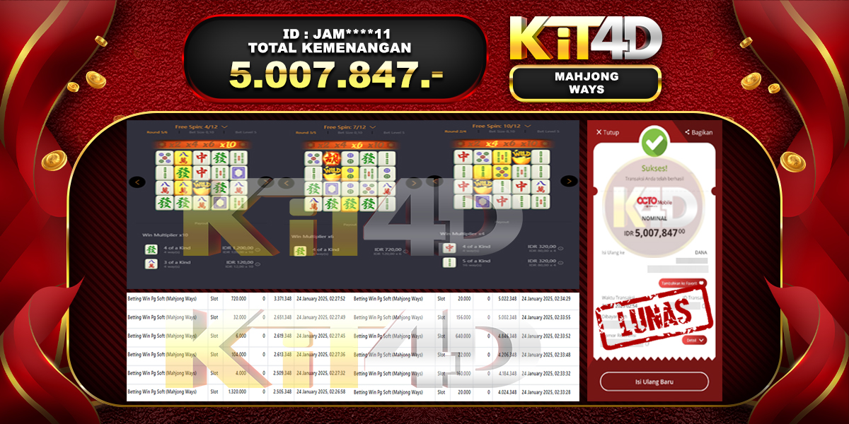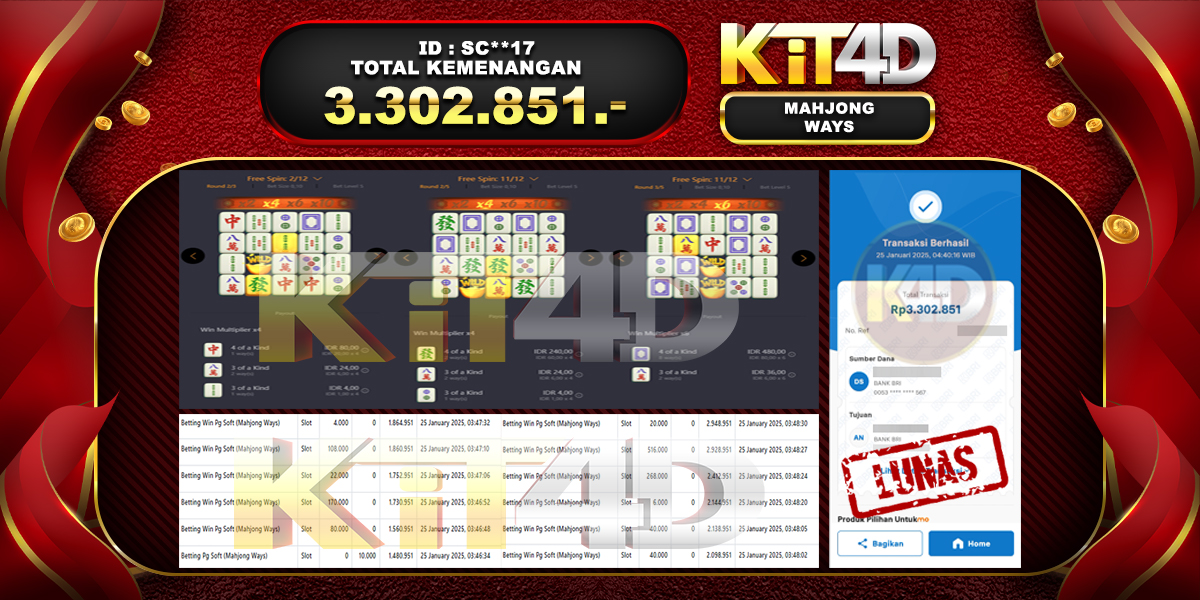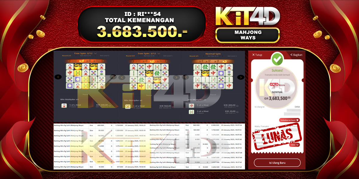 KIT4D – JP MAHJONG WAYS Rp 2,963,000 – 25 Januari 2025