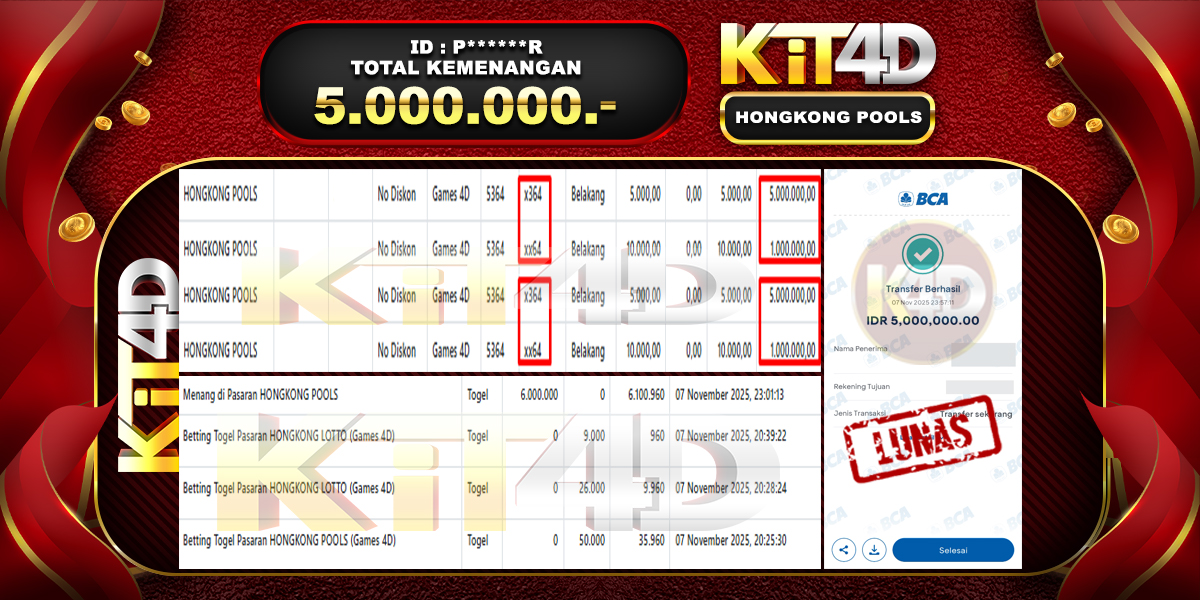 KIT4D – Selamat kepada Pemenang User ID : P******R JP HONGKONG POOLS Rp 5.000.000 pada 07 November 2025 – Bermain di situs game online terpercaya […]