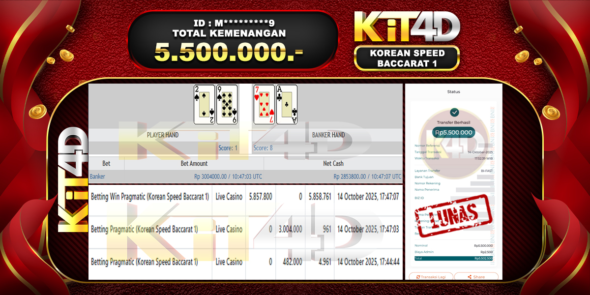 KIT4D – Selamat kepada Pemenang User ID : M*********9 JP KOREAN SPEED BACCARAT 1 Rp 5.500.000 pada 14 Oktober 2025 – Bermain di situs game […]
