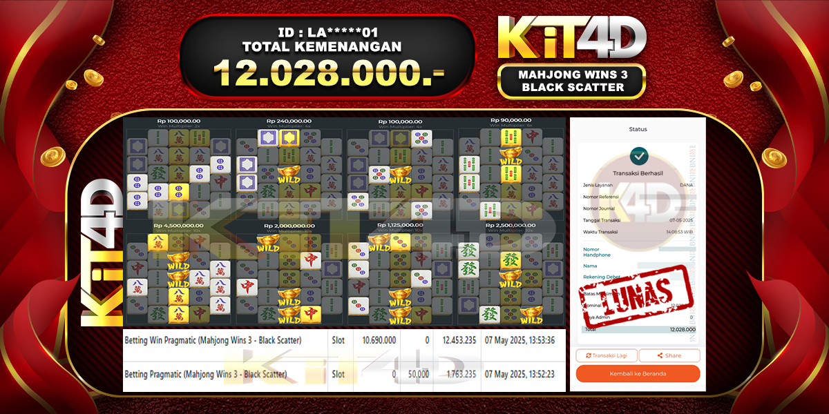 Read moreKIT4D – JP MAHJONG WINS 3 BLACK SCATTER Rp 5,819,000, – 13 MEI 2025