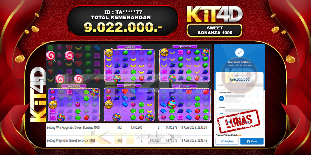 KIT4D – JP SWEET BONANZA 1000 Rp 9,022,000, – 13 APRIL 2025
